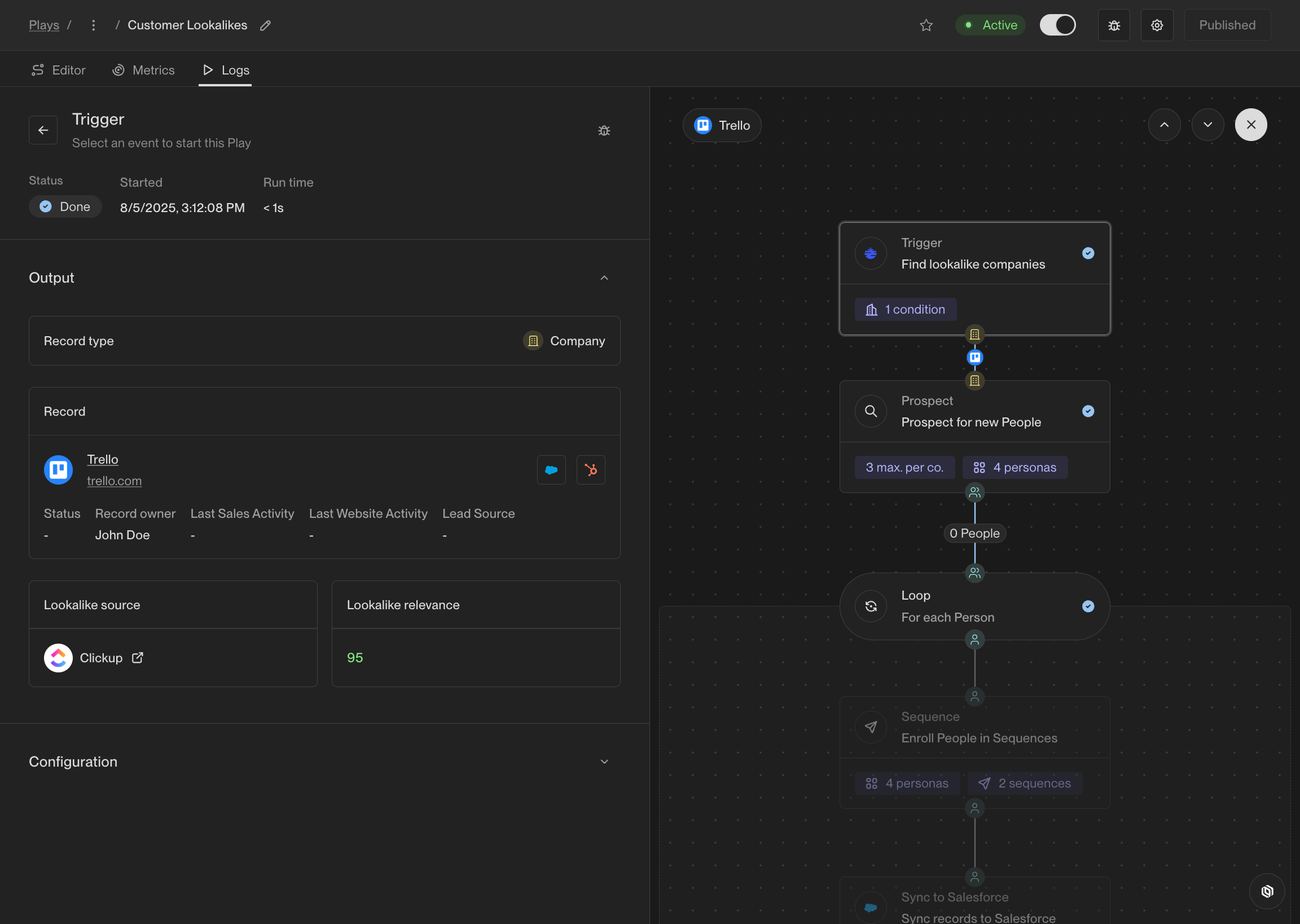 Start by setting up a new Play using the Find Lookalike Companies trigger. You can also get started with our pre-built template.
